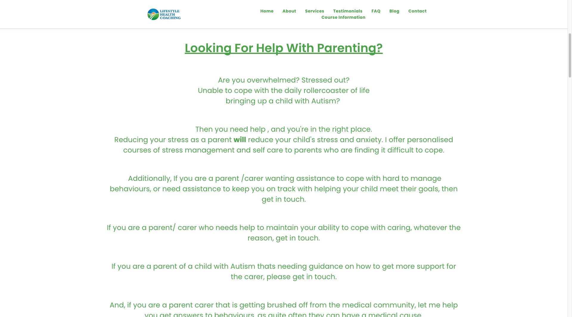 I offer personalised courses of stress management and self care to parents who are finding it difficult to cope.