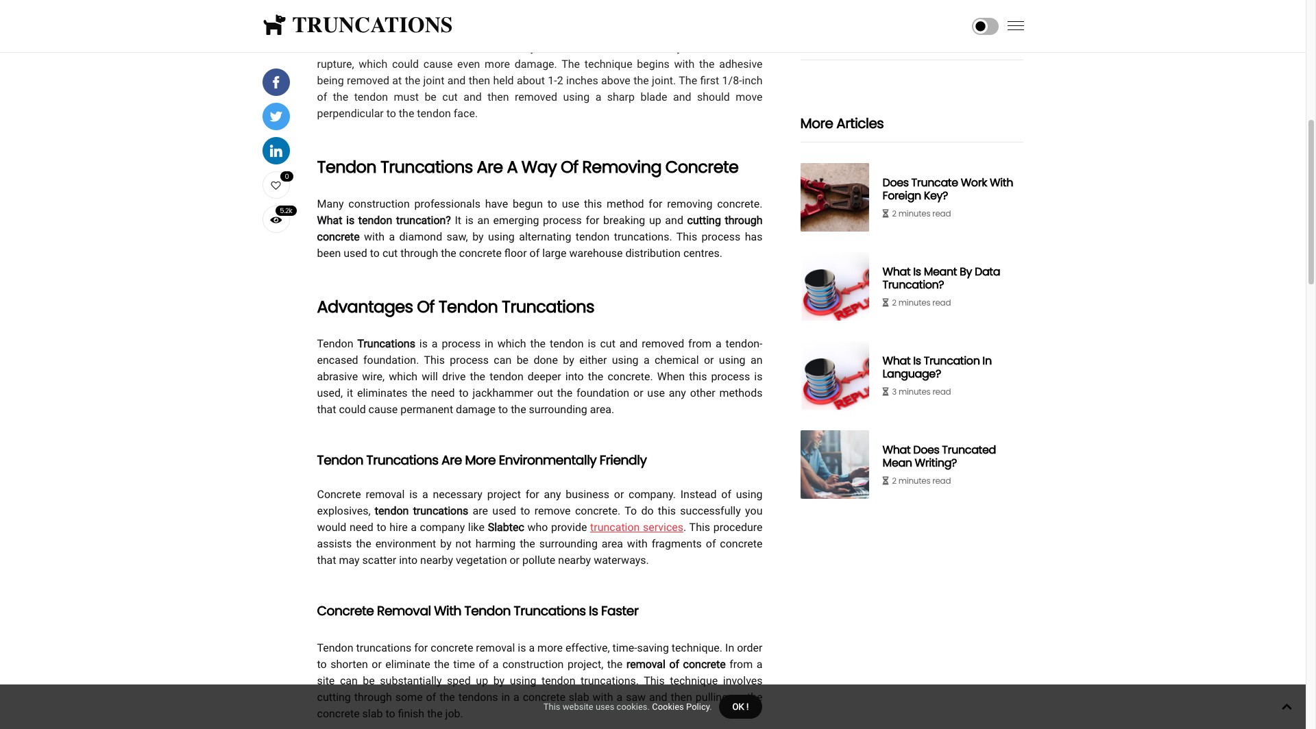 TechnologyWhat Is Tendon Truncations In Concrete Removal?Tendon Truncations are a technique for removing concretes from a tendon. This technique is used when tendon extension is necessary and should be done carefully to avoid tendon rupture, which could cause even more damage.